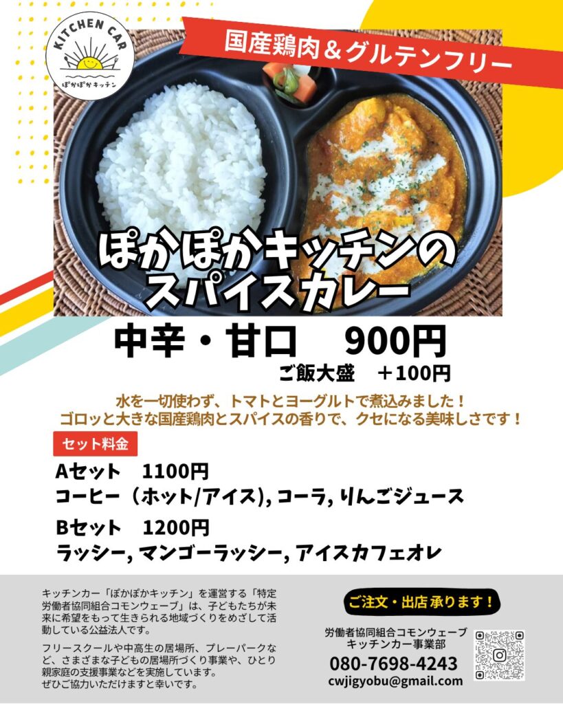 企業・団体様のランチ用に、ぽかぽかキッチンの名物「スパイスカレー」のご注文を承ります。