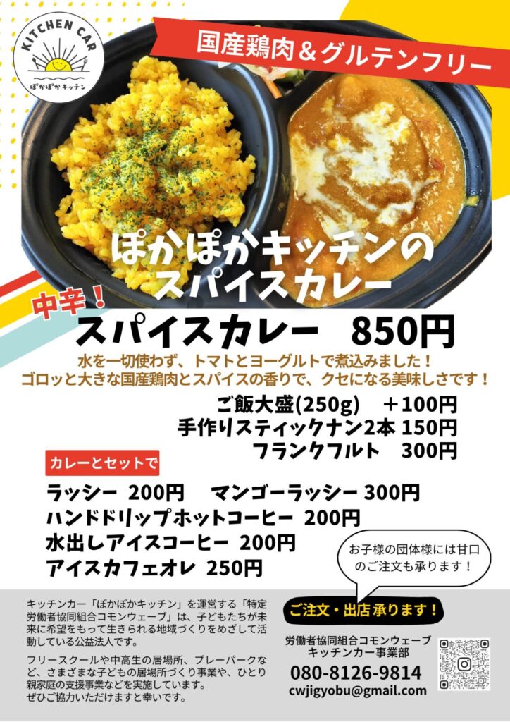 企業・団体様のランチ用に、ぽかぽかキッチンの名物「スパイスカレー」のご注文を承ります。