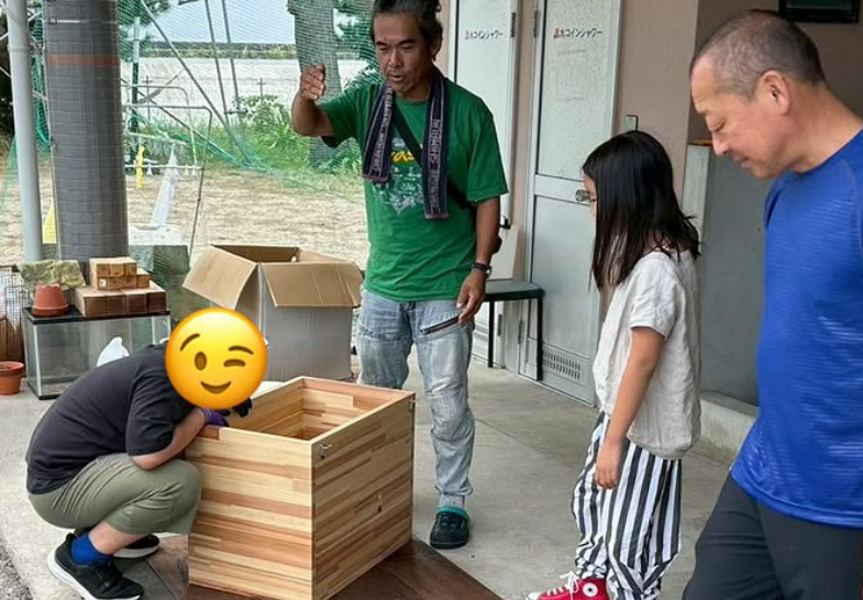 金曜の午前、「バイオマストイレ小屋」建設プロジェクトが始動。スケールメジャーを握るその姿は、まるで未来の建築家。
