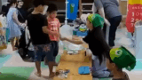 その次は“ハッタリくん”が持ってきた作品で色々と遊びました。