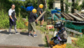 そして、ぶらんこを固定する為の杭打ち。片手で持つには重いハンマーで打って固定しました。